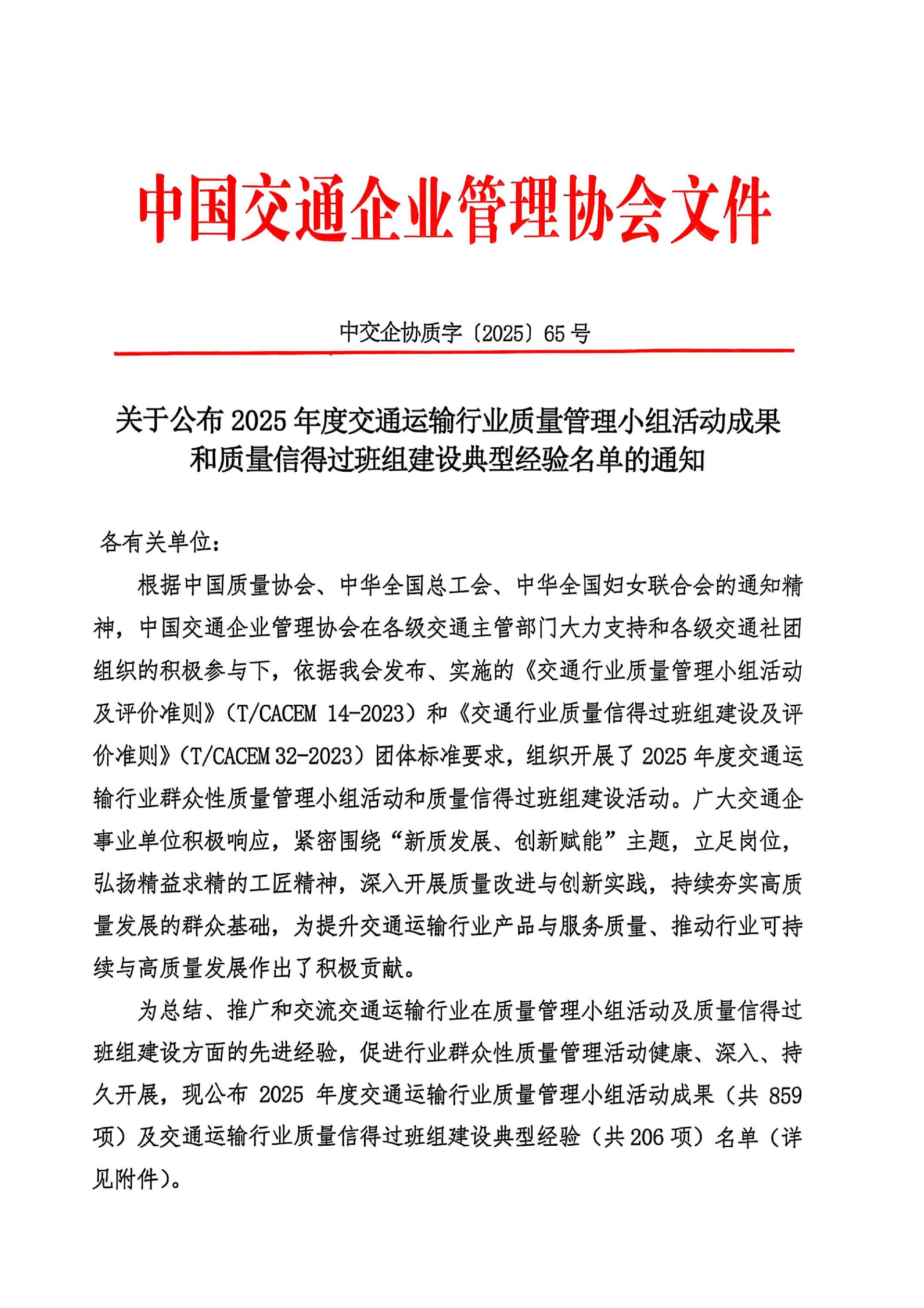 2025年11月20日,中國交通企業管理協會公布了年度交通運輸行業質量管理小組活動成果獲獎名單。開發路東延快速化改造工程“瑞沃···
